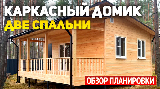 Проект дачного дома 5х7 с террасой, двумя спальнями, санузлом и прихожей. Каркасный домик