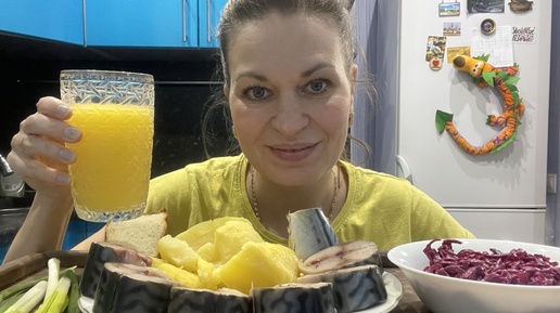 МУКБАНГ СКУМБРИЯ КАРТОФЕЛЬ СВЕКОЛЬНЫЙ САЛАТ/MUKBANG