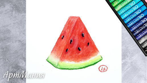 Арбуз - Масляная пастель - Как нарисовать кусок арбуза масляной пастелью.