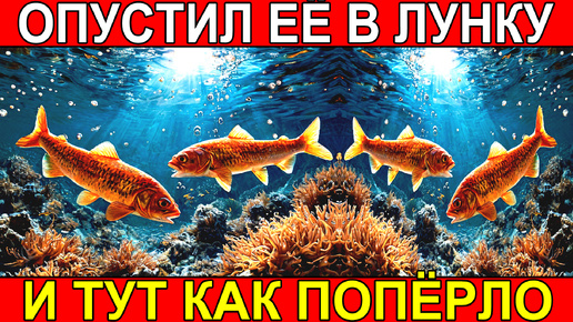 Отпустил мормышку в лунку и ловлю рыбу со льда на зимней рыбалке