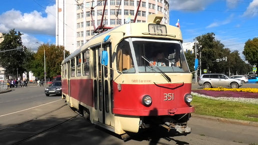 Tatra T3SU борт. №351 следует измененным маршрутом №15 по кольцу "Гостиница Исеть"