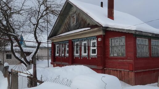Заснеженная деревня в Нижегородской области. Старинные дома с наличниками
