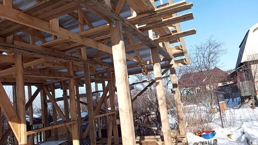 Закончил каркас крыши. Начал монтаж карниза