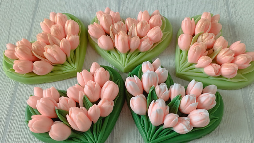 Мыло. Сердце с тюльпанами. Трудности заливки.