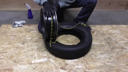 Как разбортировать и бортировать колесо своими руками с помощью верёвки!