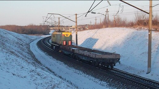 Тепловоз ТЭМ2-7852 с платформами+тифон.