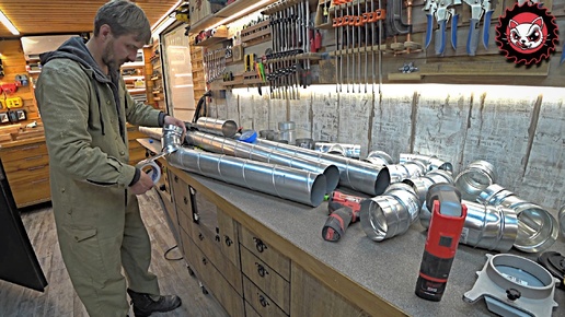 Разводка системы стружкоудаления в столярной мастерской.