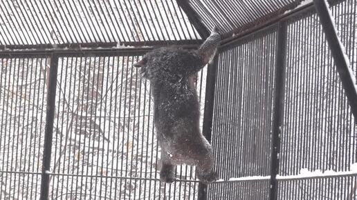 Уссурийский медвежонок девочка залезла под крышу вольера. 09.02.2025