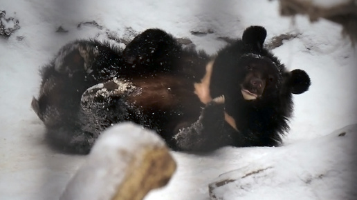 Гималайские медвежата подросли, но так же весело проводят время играя и кувыркаясь в вольере.