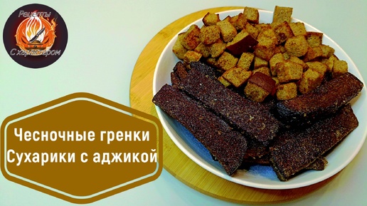 Отличные закуски к пенному за копейки. Сделать самому в разы дешевле чем купить. Чесночные гренки и сухарики с аджикой к пиву и не только.