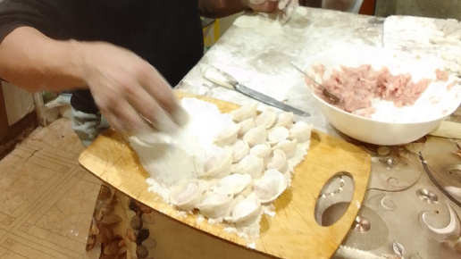 Жизнь семьи как она есть: Самая выгодная и вкусная еда про запас -- пельмени своими руками. Муж лепит.