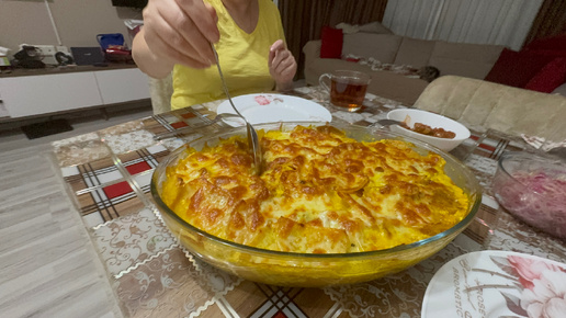 Индейка с грибами и картофелем, в сливочной заливке под сырной корочкой