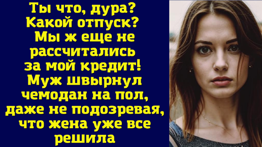 Ты что, дура. Какой отпуск. Мы ж еще не рассчитались за мой кредит. – Муж швырнул чемодан на пол