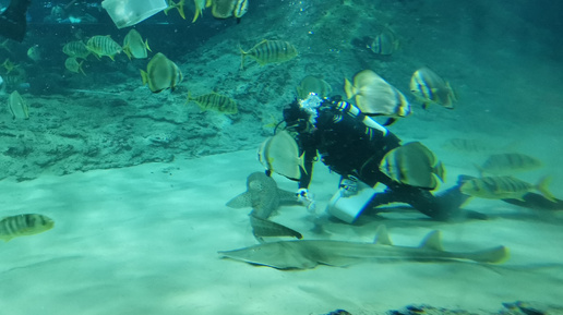 Кормление акул.Океанариум г.Когалым ХМАО.