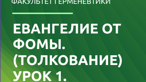 Евангелие от Фомы (толкование). Урок 1.
