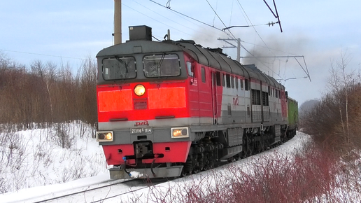"Подмигнули". 2ТЭ116К-1114 с небольшим грузовым поездом и приветливой бригадой