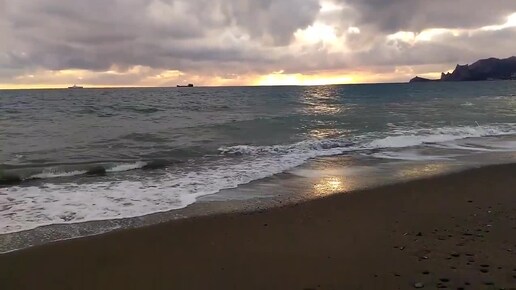 Крым, Судак, вечер у моря в феврале. Прибой, закат, красивое небо