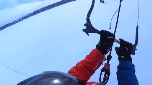 Пироговское водохранилище зимой. Покатался на сноуборде под кайтом. 16.02.2025