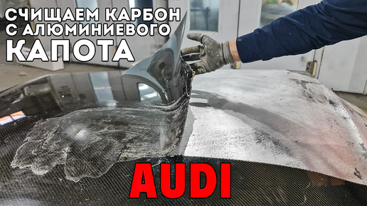 Карбон начал облезать с алюминиевого капота. Счищаем весь карбон, подготавливаем и красим капот
