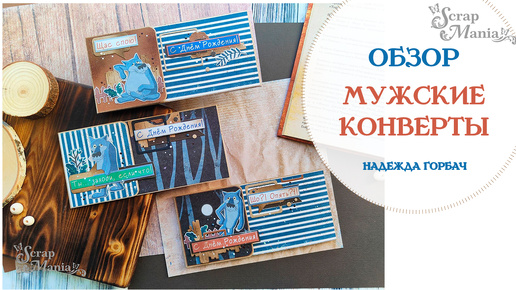 Мужские конверты "С днем рождения". Коллекции "Жил-был пес" и "Дневник туриста" ScrapMania