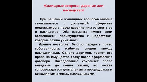 Жилищные вопросы дарение или наследство в Красноярске