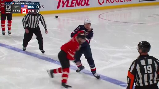 Канадцы и американцы от души поколотили друг друга в самом начале матча