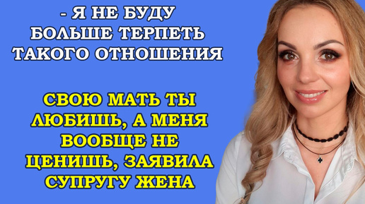 Я не буду больше терпеть такого отношения, свою мать ты любишь, а меня вообще не ценишь, заявила супругу жена...Правдивые истории из жизни