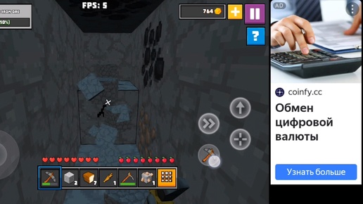 я нашла алмазы в куб шахте 💎 и добыла 10 железной руды и ещё золото но всё провалилось в пропасть ничего не 🙁