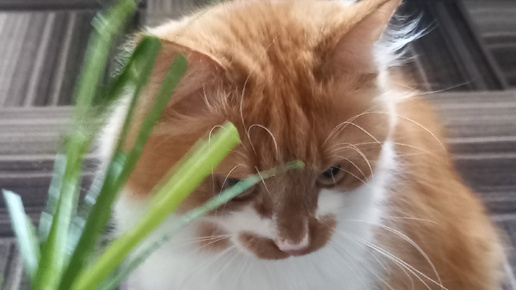 Кот Степан любит есть комнатные цветы