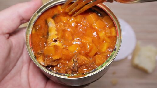 Консерва жаренная килька в томатном соусе с белым хлебом