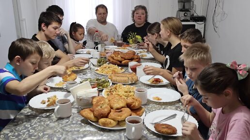 Мукбанг - Беляши в большой семье - Плов с соленьями от 17.02.25г.