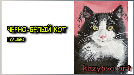 Как нарисовать черно-белого КОТА гуашью. Мастер-класс