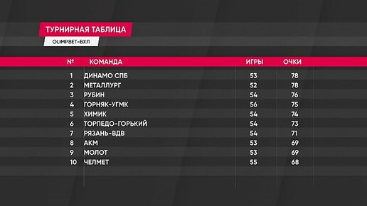 "Рубин" после разгрома казанского "Барса" остался на третьей позиции в OLIMPBET-ВХЛ