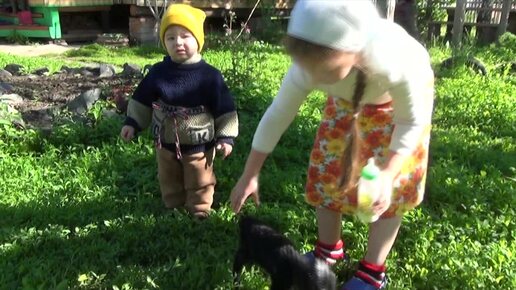 Каникулы у бабушки в деревне: Внуки кормят барашка с бутылочки🍼🐏👶🏻, а дедушка вяжет веники для бани🌿