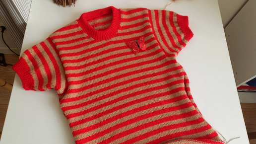 Полосатый джемпер с рукавом фонарик для девочки )на Лк150.