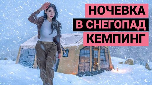 Ночевка в снегопад | Надувная палатка с дровяной печкой