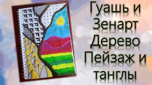 Гуашь и Зенарт Дерево Пейзаж и танглы