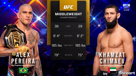 Алекс Перейра против Хамзата Чимаева Полный бой - UFC 5