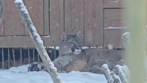 Пума Бостон играет и отдыхает на снегу. ПАРК ЗЕМЛЯ ПРАЙДА 🌿
