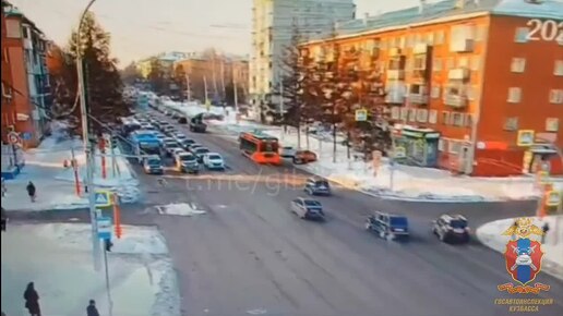 Кадры аварии в Кемерове на ул. Красноармейская: в результате столкновения одна из легковых машин перевернулась.