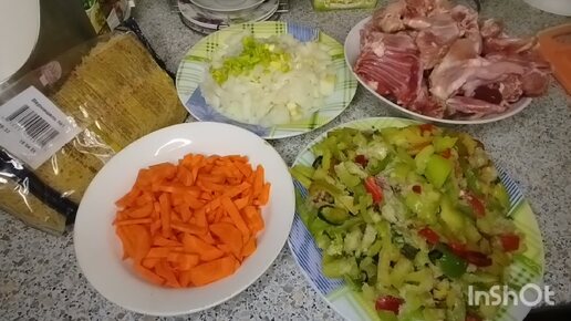 Рецепт приготовления кролика с овощами и жареной вермишелью. 😋👍
