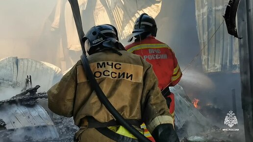 В Симферопольском районе Крыма огнеборцы тушат крупный пожар в магазине