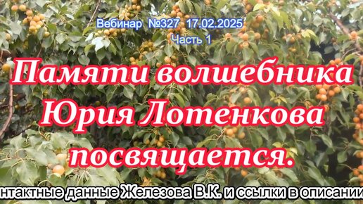 Железов Валерий. Вебинар 327. ч.1. Памяти волшебника Юрия Лотенкова посвящается.