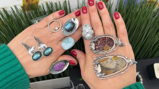 Ювелирное серебряное ассорти: кольца ,серьги, цепи, браслеты, подвески с натуральными камнями