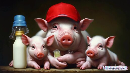 Поросята сосут хряка