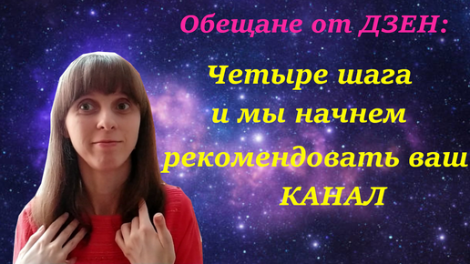 Дзен: Обещание. Четыре шага и мы начнем рекомендовать ваш канал