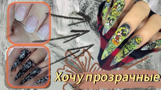 ДИЗАЙН НОГТЕЙ ГРАФФИТИ // В ЭТОТ РАЗ ТОЧНО ПРОЗРАЧНЫЕ // НАРАЩИВАНИЕ НОГТЕЙ // СТИЛЕТЫ // СТЕМПИНГ // МИККИ МАУС