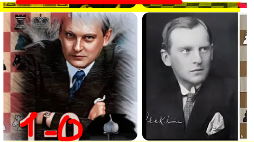 Александр Алехин разыгрывает вариант Капабланки в индийской защите за белых, уверенно идя к победе над Эдгаром Колле (Англия, 1926, 1-0)