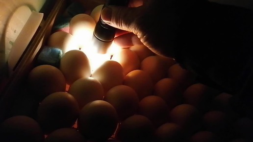 Овоскопирование куриных яиц в инкубаторах.