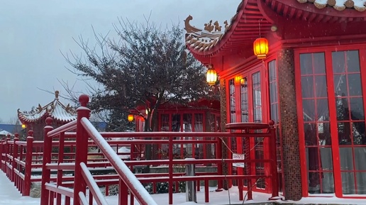 Китайский дворик. Иноземцево, парк Зеленый квартал (февраль 2025 года)